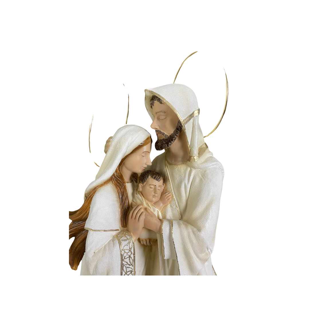 AdicionarA devoção à Sagrada Família — composta por Jesus, Maria e José — é uma expressão profunda da espiritualidade cristã, pois ela revela o modelo de vida familiar segundo os desígnios de Deus. A Igreja Católica exalta a Sagrada Família como exemplo de obediência, amor e união, convidando os fiéis a se espelharem na fé silenciosa de José, na ternura materna de Maria e na presença divina do Menino Jesus. Representar essa família sagrada é reafirmar os valores cristãos no cotidiano.