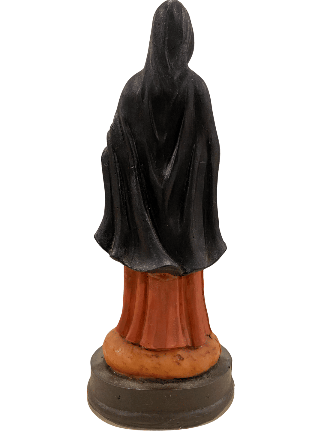 Esta escultura de Santa Clara é uma peça de arte sacra que combina tradição e qualidade artística, ideal para oratórios, capelas ou ambientes religiosos que valorizam imagens com significado e beleza.