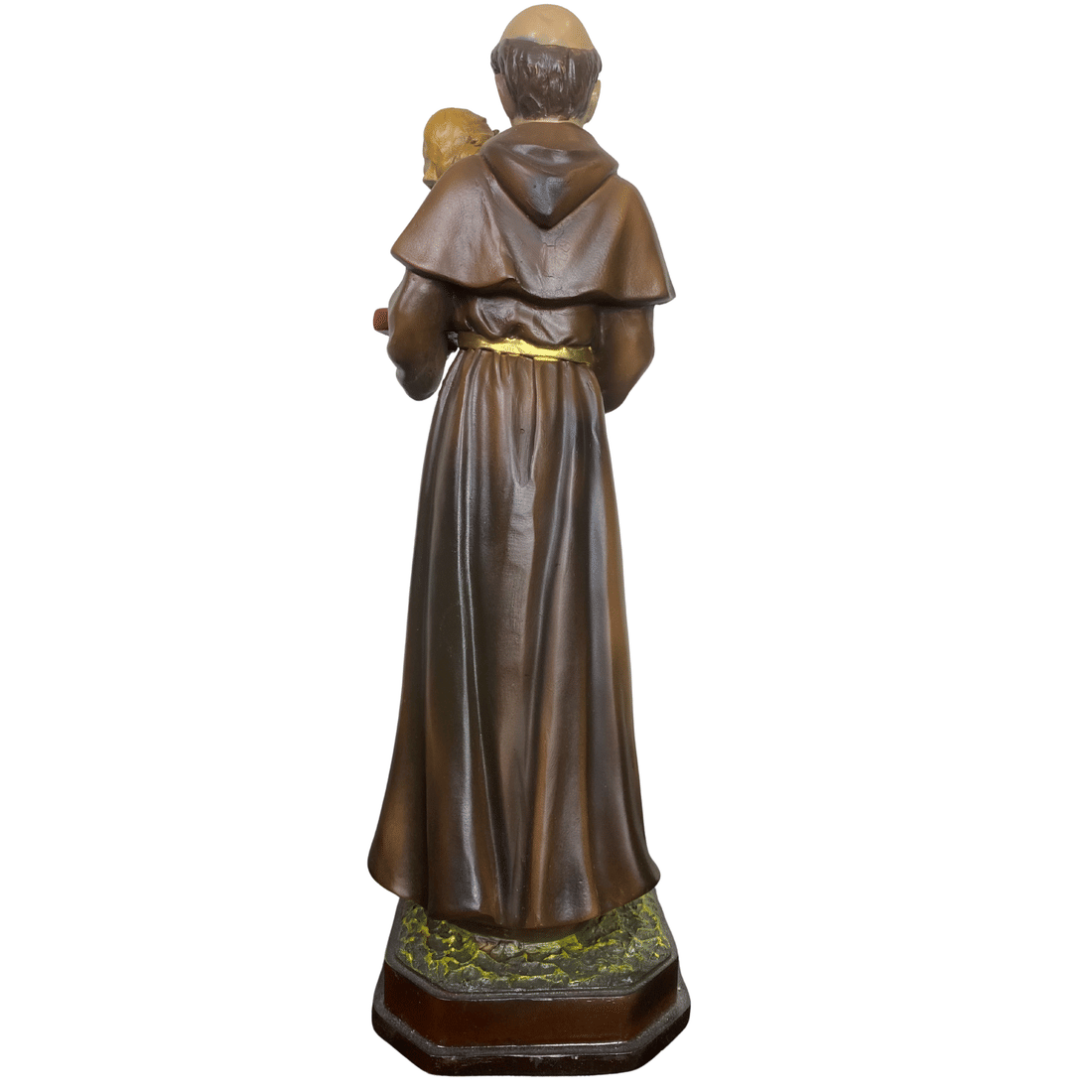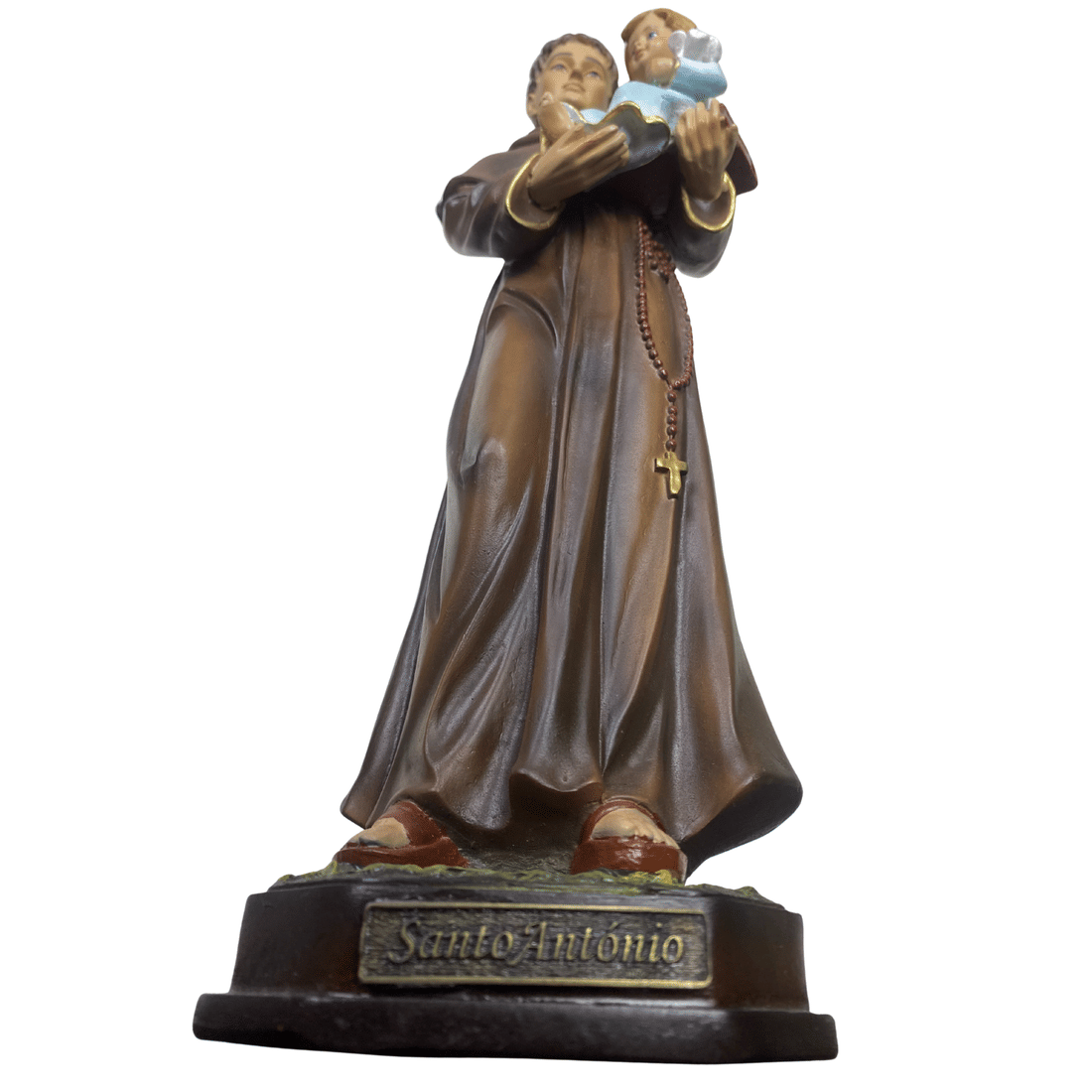 Com sua apresentação clássica e riqueza de detalhes, esta imagem valoriza a tradição da arte sacra católica, sendo ideal para oratórios, capelas ou ambientes religiosos. Uma peça que combina devoção, beleza e arte, representando com nobreza um dos santos mais queridos do calendário litúrgico.