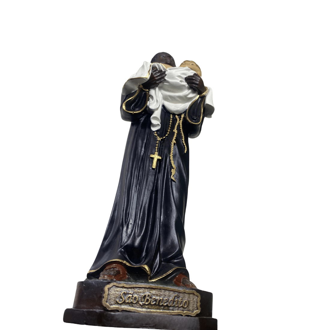 Com sobriedade e beleza, esta imagem valoriza a arte sacra e enriquece oratórios, capelas ou espaços religiosos com uma representação fiel e respeitosa de São Benedito. Uma peça que une qualidade técnica à tradição cristã, refletindo a devoção e o legado espiritual do santo