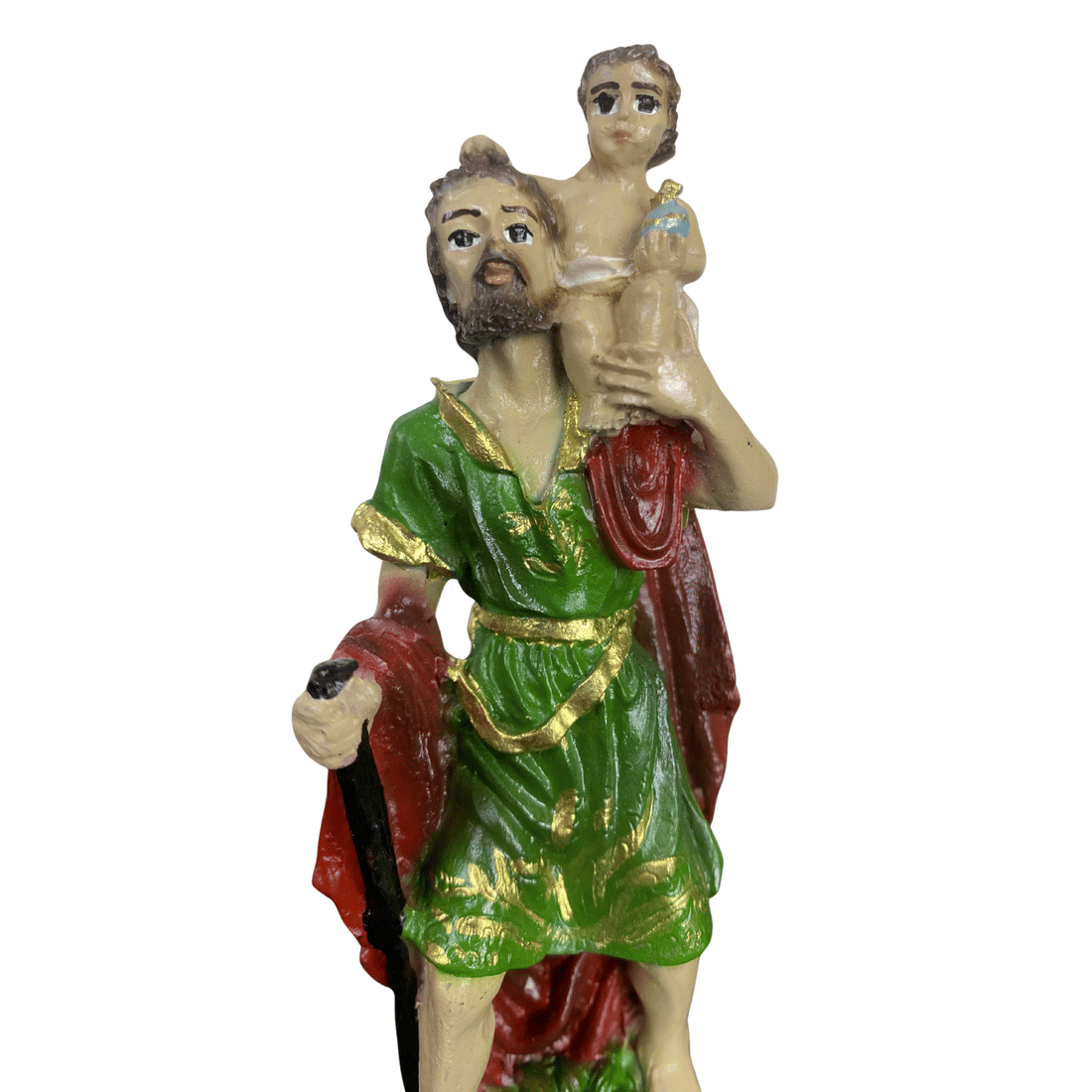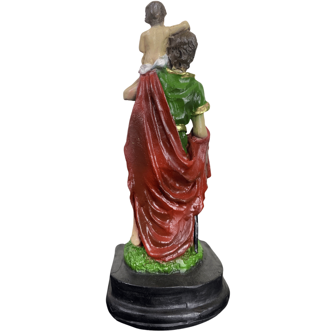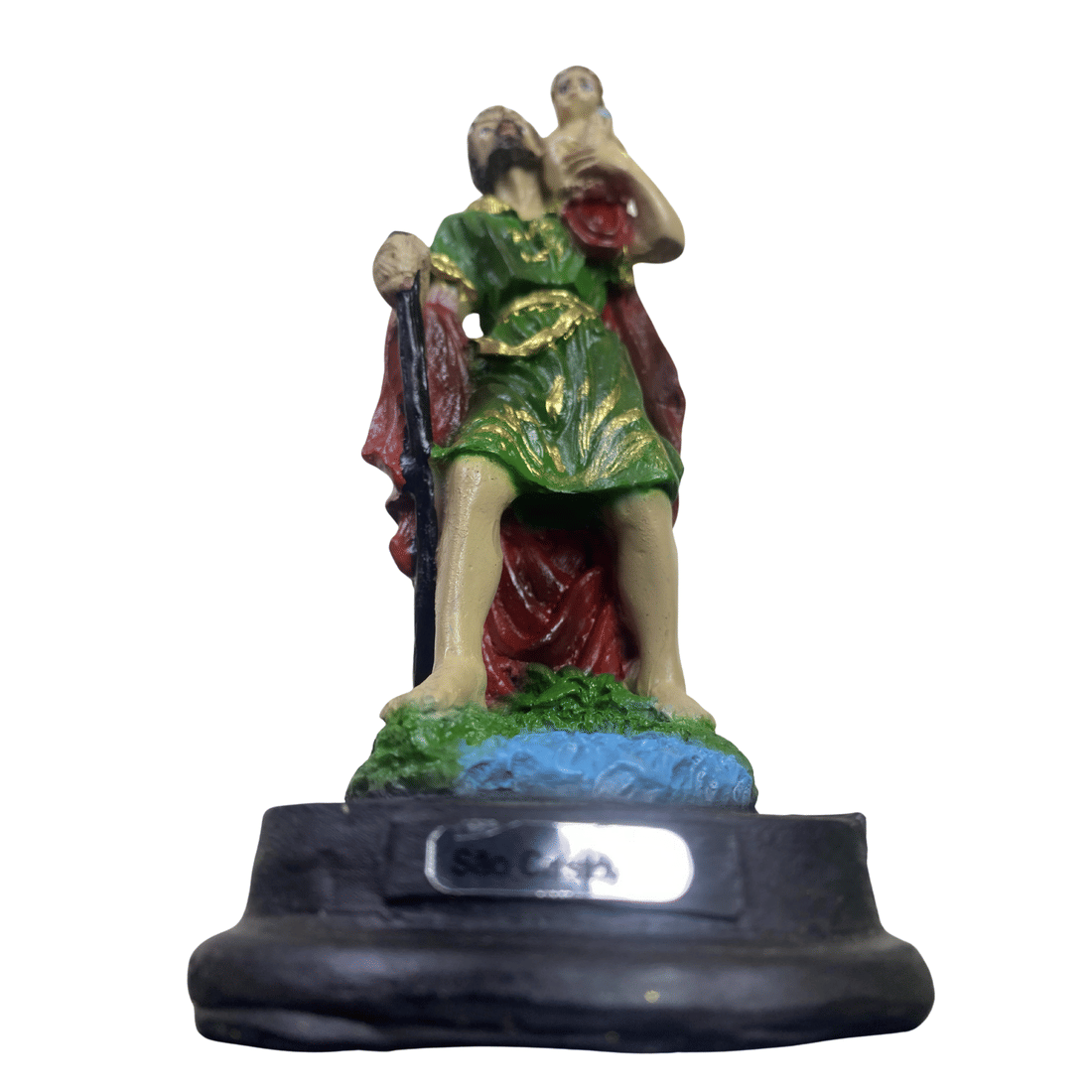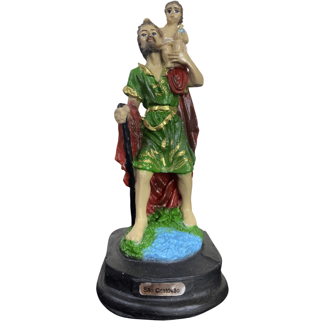Esta imagem de São Cristóvão valoriza a arte sacra católica, sendo uma peça ideal para oratórios, capelas ou ambientes religiosos. Sua presença elegante e simbólica preserva a tradição cristã e a beleza estética das representações sagradas, compondo com nobreza e respeito qualquer espaço de fé e contemplação.