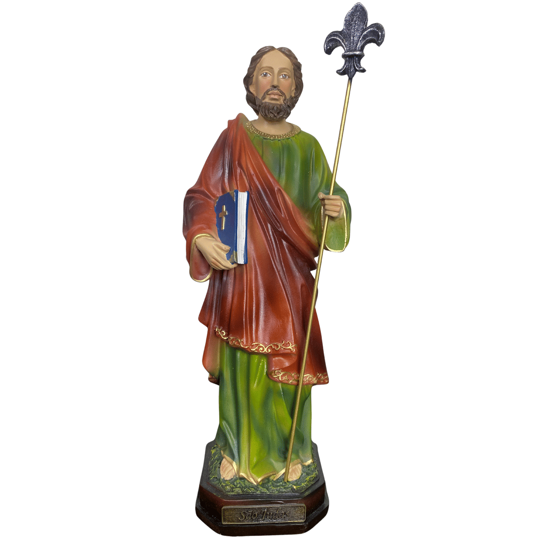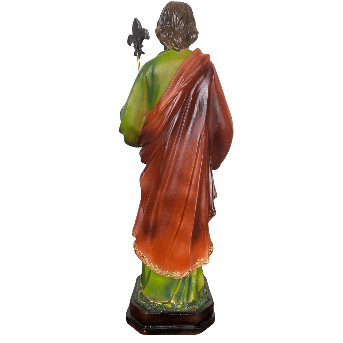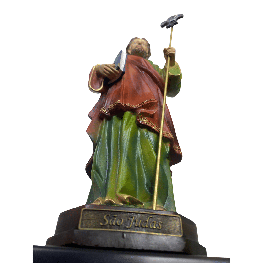 Com sua beleza clássica e riqueza de detalhes, esta imagem de São Judas valoriza a arte sacra católica, sendo ideal para oratórios particulares, capelas ou ambientes de oração. Uma representação fiel e elegante que integra tradição e arte religiosa com respeito e sobriedade.